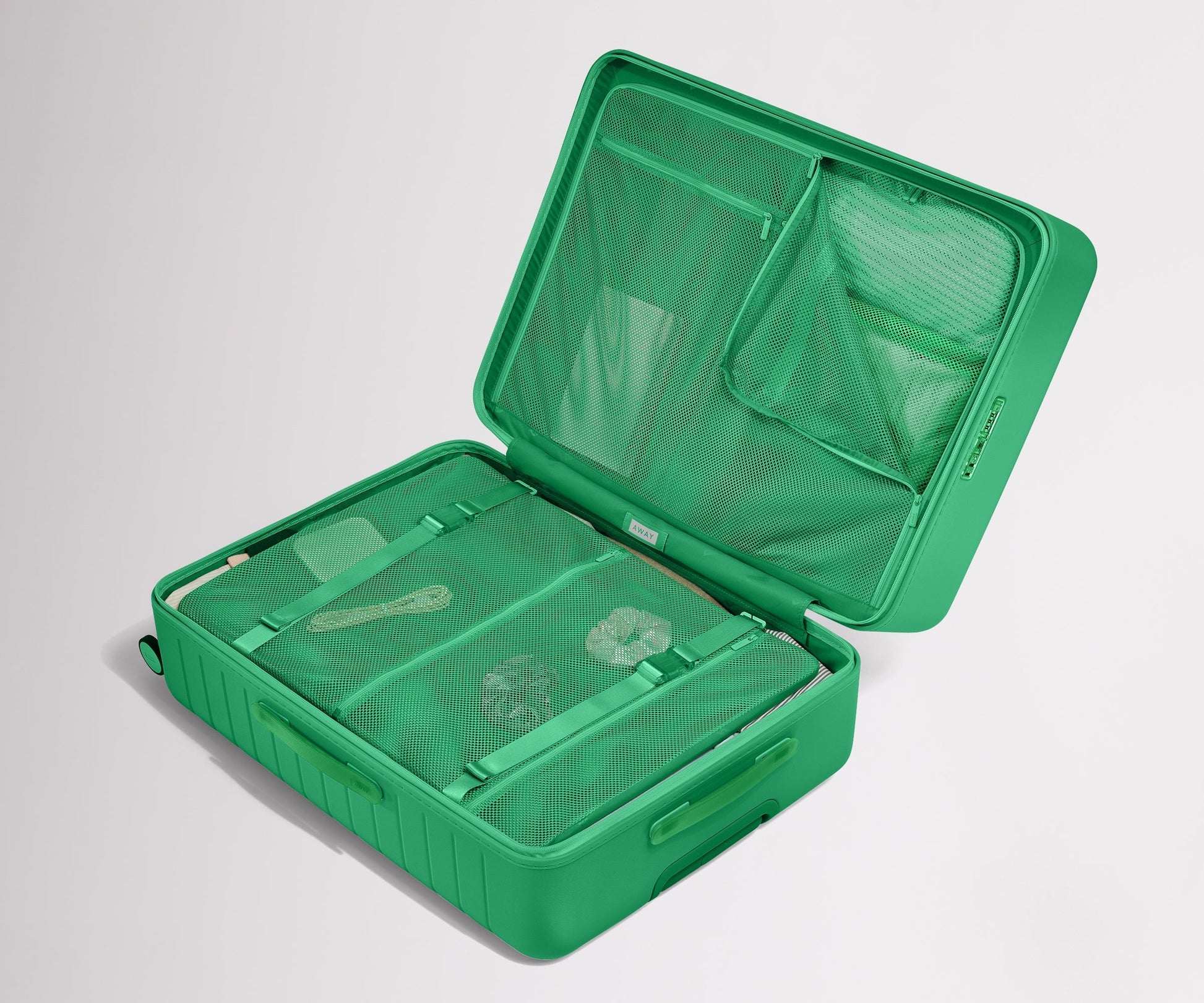 Crafted with a durable, lightweight polycarbonate hard shell featuring a frosted, clear finish and the same signature interior compression system you know and love. Semi-transparent handles, custom limited edition details, and color-matched wheels complement make the perfect travel companions for your spring getaway.