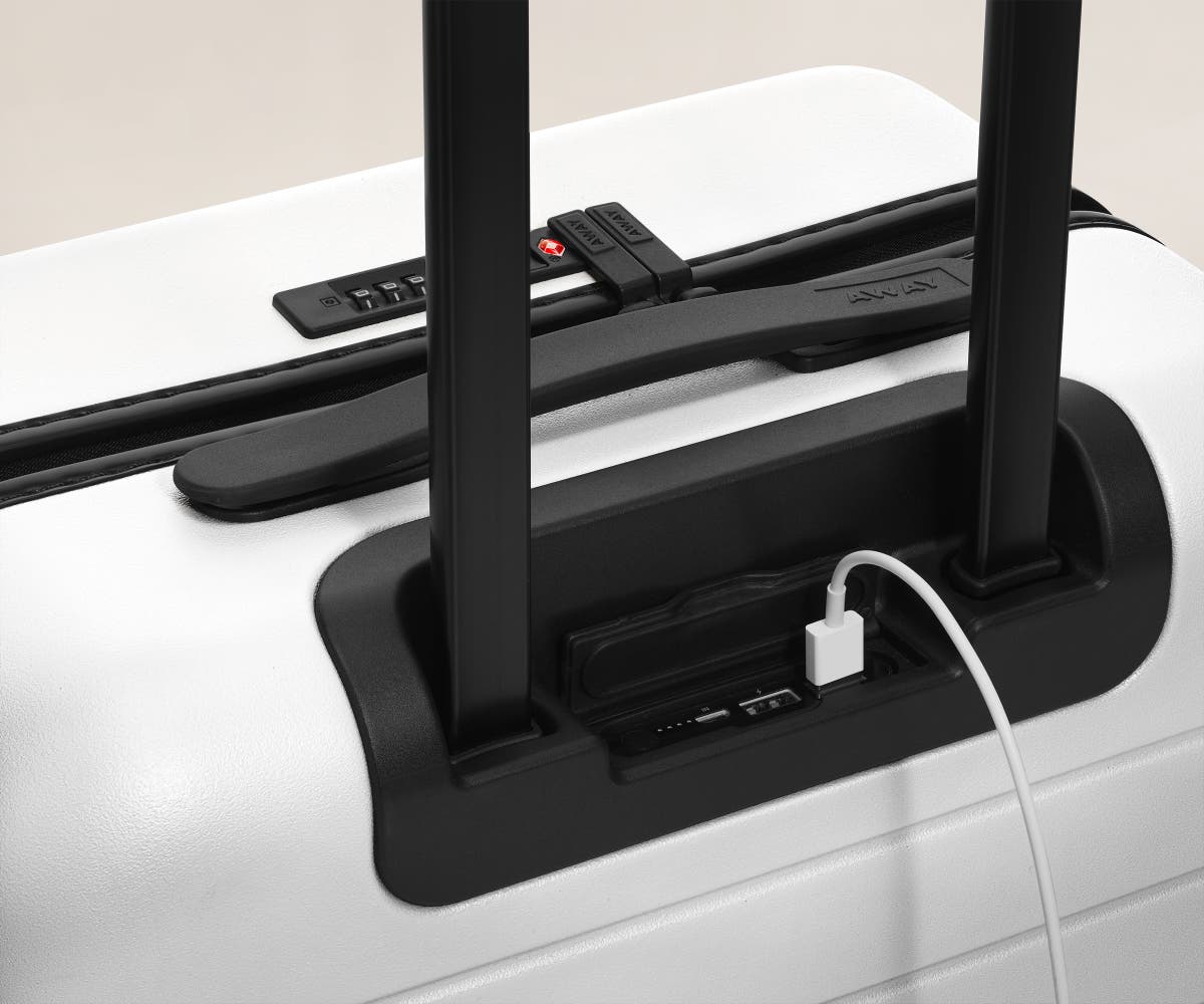 For travelers who want to stay connected while on the go, our Bigger Carry-On suitcase comes with a removable battery that can charge your phone up to 4x, is TSA-approved, and safe to fly with.